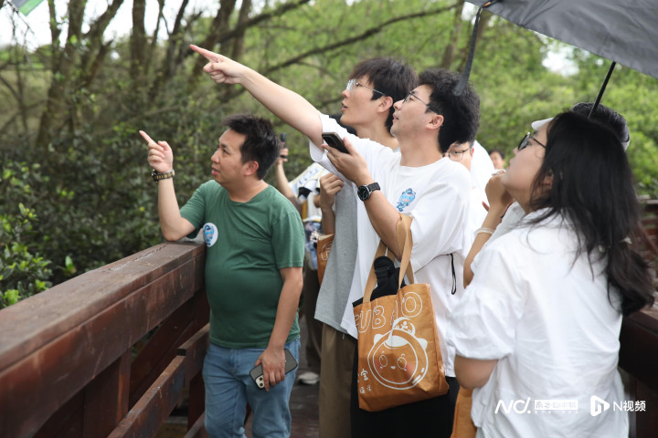 行程尾声,“Tian”才们漫步于被誉为“深圳湾钥匙”的福田红树林生态公园。在炎炎夏日下,探索自然的热情丝毫未减:弹涂鱼、招潮蟹、鹭鸟、红树林……仿佛上了一堂生动的“生物实地课”。人与自然和谐共生的画面,也为这场城市漫游注入了一种诗意与静谧。